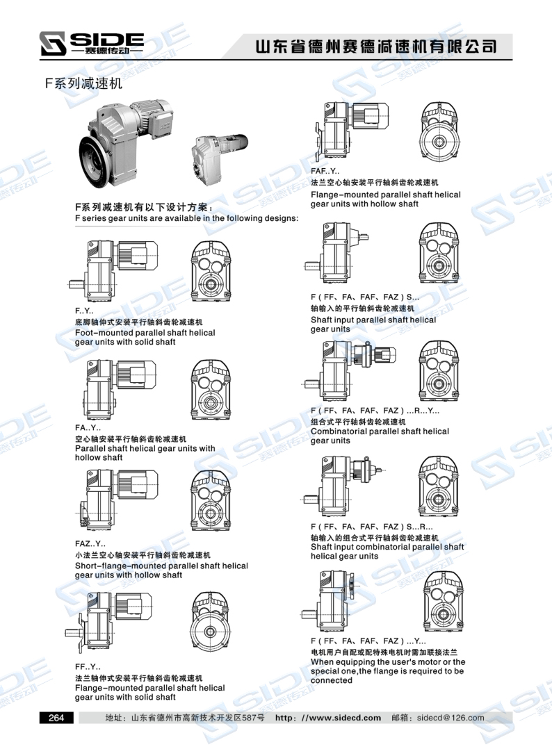 F系列減速機,結(jié)合國際技術(shù)要求制造,具有很高的科技含量,節(jié)省空間,可靠耐用,承受過載能力高,功率可達(dá)90KW以上,能耗低,性能優(yōu)越,減速機效高達(dá)95%以上,振動小噪音低,節(jié)能高,選用優(yōu)質(zhì)鍛鋼材料,鋼性鑄鐵箱體,齒輪表面經(jīng)過高頻熱處理,經(jīng)過精密加工,確保軸平行度和定位的精度,這一切構(gòu)成了齒輪傳動總成的減速機配置了各類電極,形成了電極一體化,完全保證了產(chǎn)品使用質(zhì)量特性。